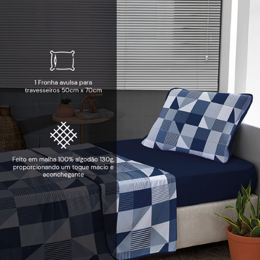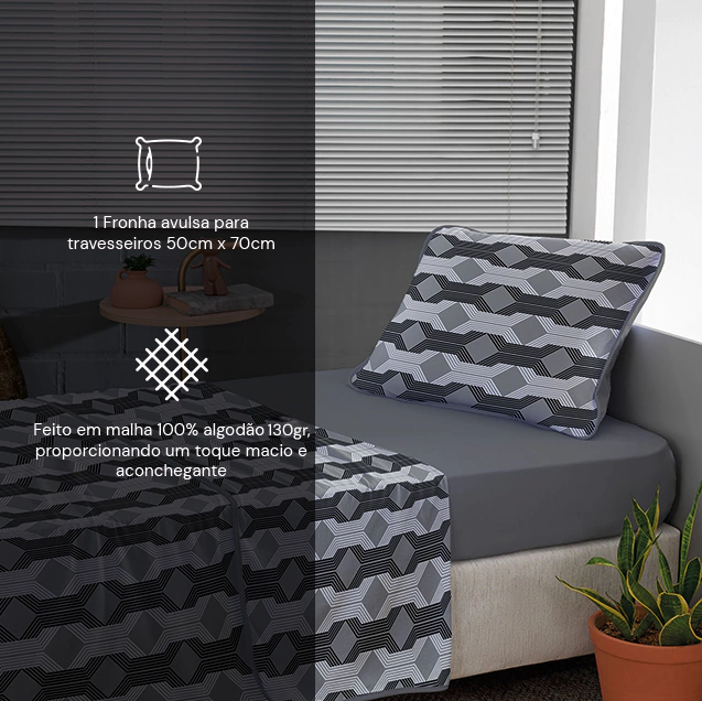 · 1 Fronha Estampada Avulsa com Viés 50cm x 70cm;