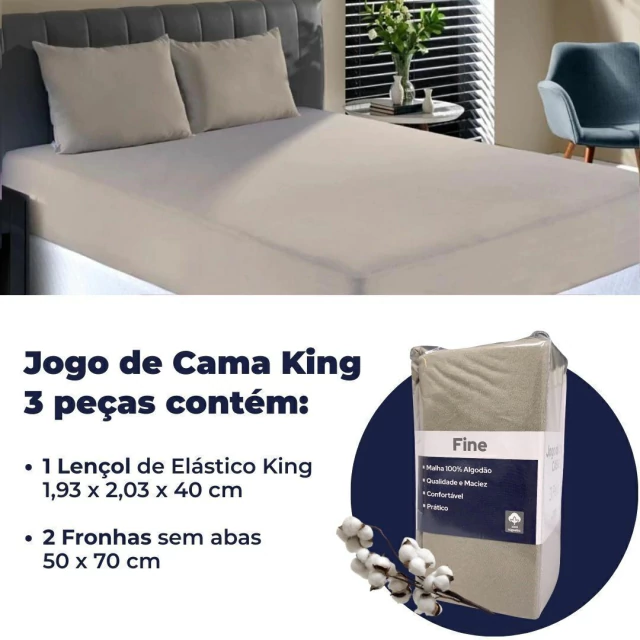 Confeccionado em malha 100% Algodão com gramatura de 130gr/m² (frente/verso). Tecnologia de malha que proporciona muito mais conforto ao deitar, garantindo muito mais qualidade e maciez. O lençol de elástico fica ajustado ao colchão, colaborando com a organização da cama de forma facilitada e para uma noite de sono agradável. Seu tecido 100% algodão garante a durabilidade ao produto, além de complementar a decoração do quarto com um charme todo especial. E as fronhas possuem o mesmo estilo do lençol sem abas.