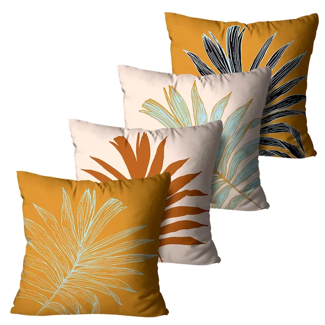 · 4 Capas de Almofadas com Estampa Folha Laranja 45cm x 45cm;