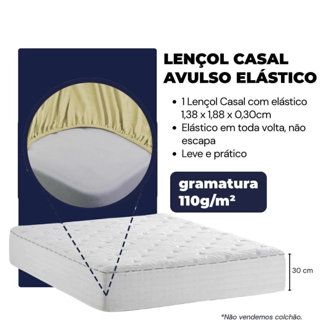 Peça coringa para sua decoração, versátil, básico e com opções de cores que possibilita muitas decorações. Pode casar com qualquer outro estilo, pois as peças lisas e neutras são coringas. Confeccionado em Malha 100% Algodão, o Lençol com Elástico possui tecnologia que proporciona a não geração de bolinhas, deixando o lençol muito mais confortável e macio. O lençol possui elástico em toda sua volta, se adaptando mais facilmente ao colchão e sendo mais prático no momento de colocá-lo, mantendo-o sempre muito bem esticado na cama.