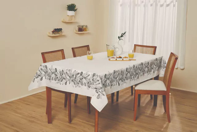 A nossa linha de Toalhas de Mesa da coleção Clara possui estampas lindas e delicadas! Trazendo sofisticação e elegância para sua mesa! A estampa Clara possui folhagens preta e branca que trazem elegância e classe para sua cozinha.