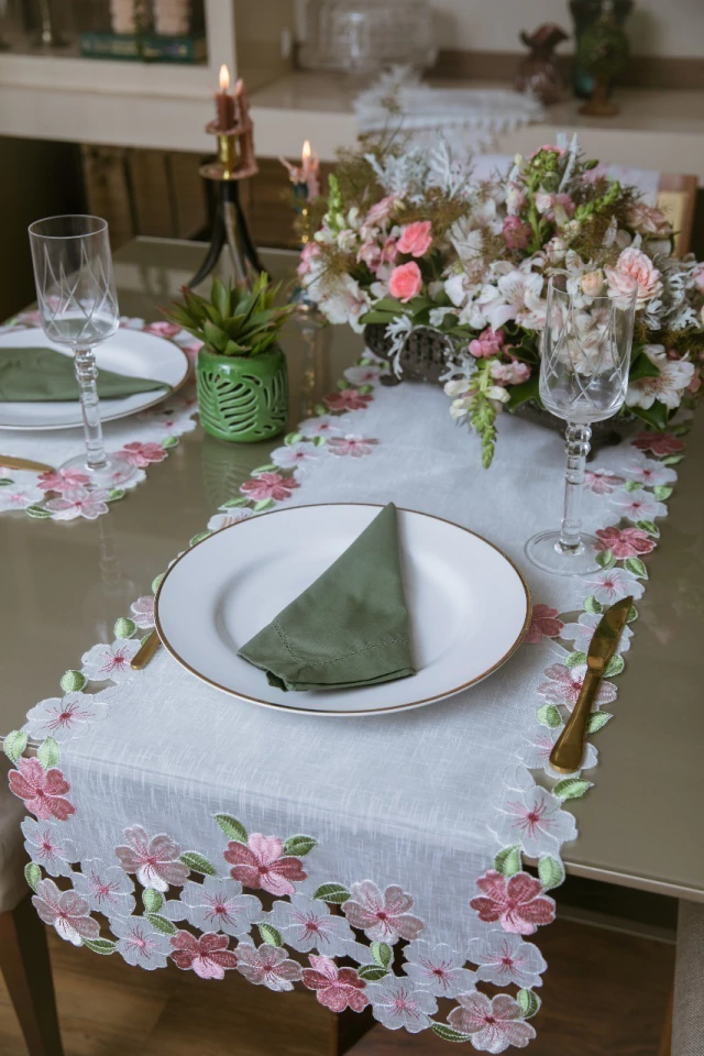 O Trilho de Mesa Jardim é um produto da coleção Clássica, uma linha que traz elegância e sofisticação em cores românticas e recortes modernos.